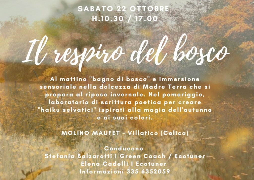 Incontro autunnale organizzato nella splendida cornice della Natura che circorda il lago di Como. Saremo ospiti del Molino Maufet, luogo del Cuore del Fai, per una giornata di esperienze di riconnessione sensoriale con la natura che si prepara al riposo invernale e di espressione creativa ispirata agli Haiku Selvatici.