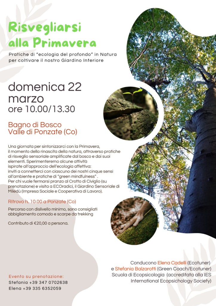 Un percorso nel Bosco della Valle di Ponzate (Co) per sperimentare una connessione profonda con la Primavera, attingendo a pratiche di Ecologia del Profondo, Ecopsicologia Applicata ed Ecoterapia Poetica.